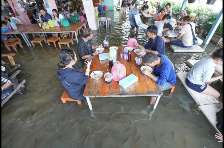 Thai Restaurant Turns Seasonal Flooding into a Dining Attraction with Swimming Fish
