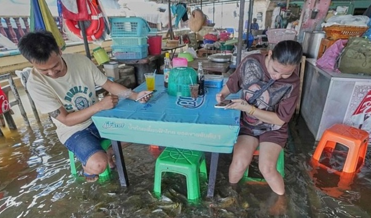 @thailand-thb / IG / When the waters rise, the internet follows. The latest flood started about eleven days ago, and once again, Pa Jit is packed.