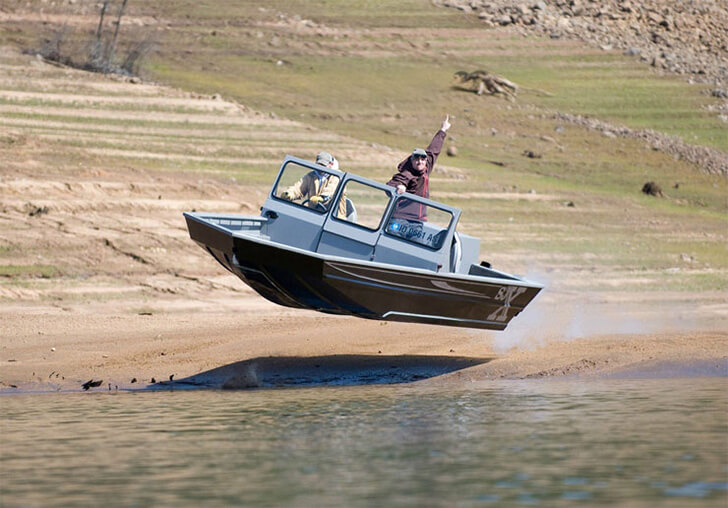 Die Antwort liegt darin, dass sie sich mit zu großer Geschwindigkeit auf einem “Bayou” bewegen. Dabei handelt es sich um ein flaches, langsam fließendes Gewässer. Boote, die in einem solchen Gebiet fahren, sollten sich eigentlich an den langsam fließenden Wasserstrom anpassen. Offensichtlich haben diese beiden Männer etwas übertrieben und scheinen deshalb zu fliegen.
