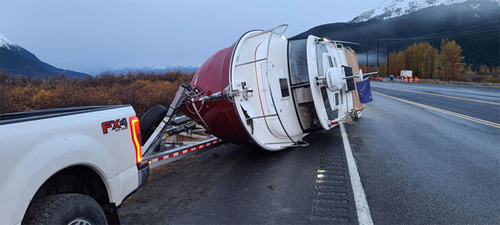 Boote mögen einem Ford Pickup überlegen aussehen, aber man muss bedenken, dass sie auf der Straße und nicht auf dem Wasser sind. Das heißt, der Fahrer hätte eindeutig mehr auf die Schwerkraft achten sollen.